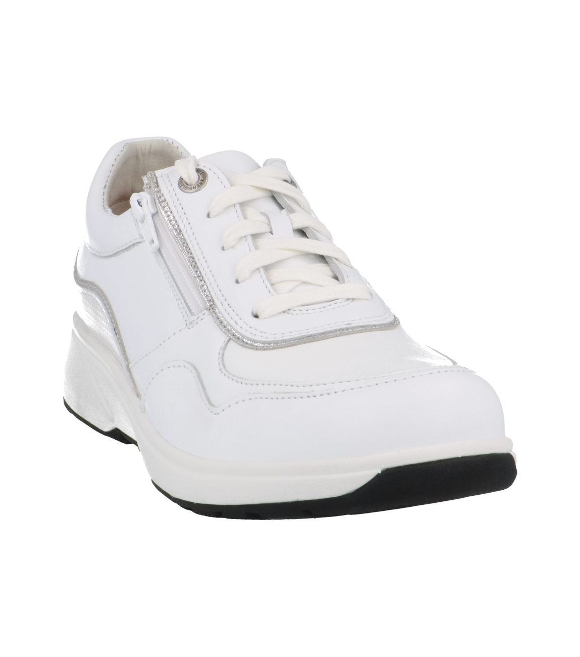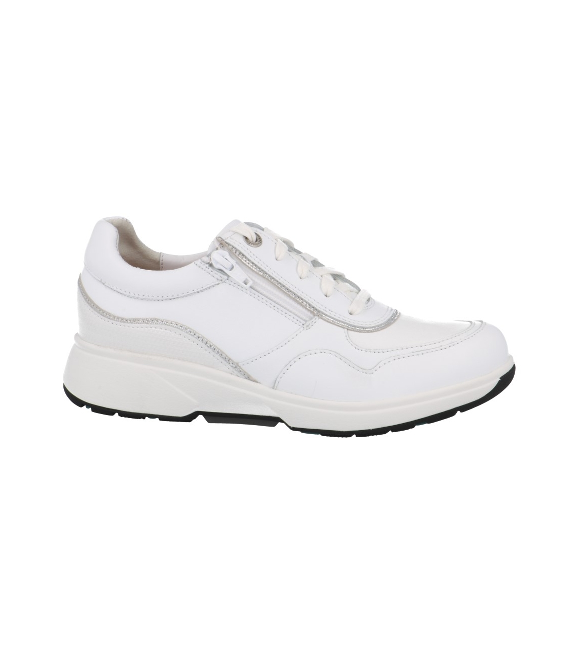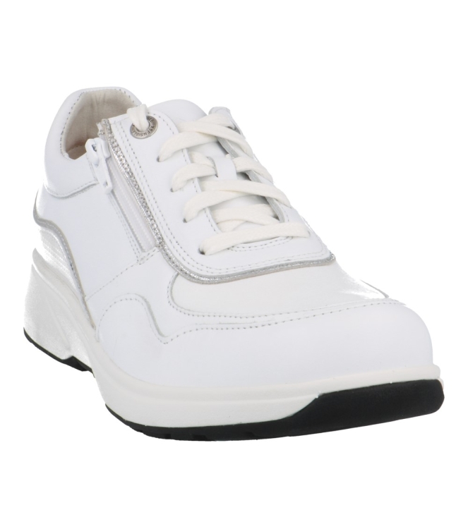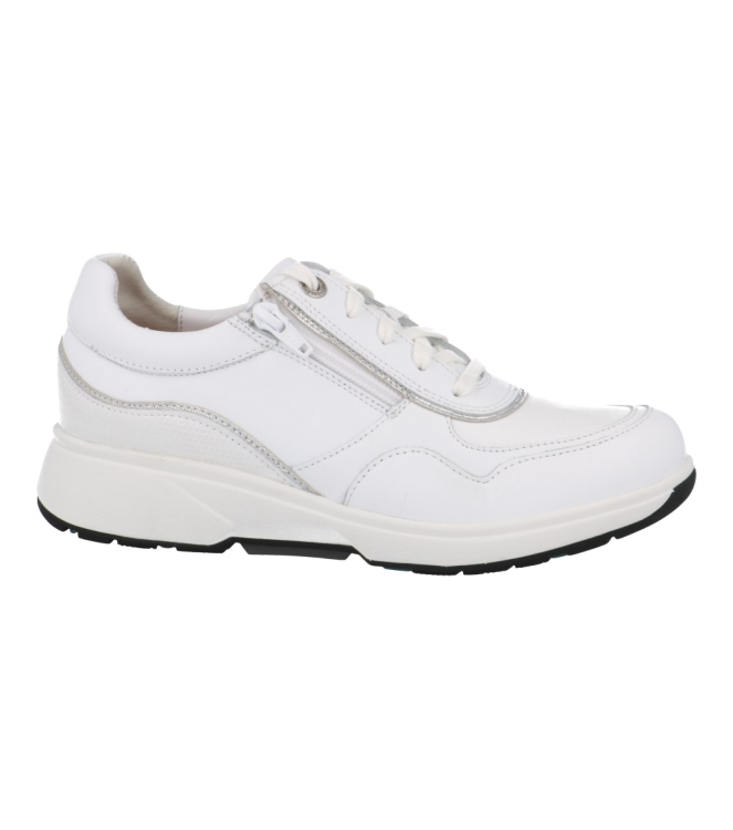 Xsensible 30204.3 Lima wit leren vetersneaker met ritsje. Deze bredere HX comfortsneaker met uitneembaar voetbed heeft stretchleer op de voorvoet.